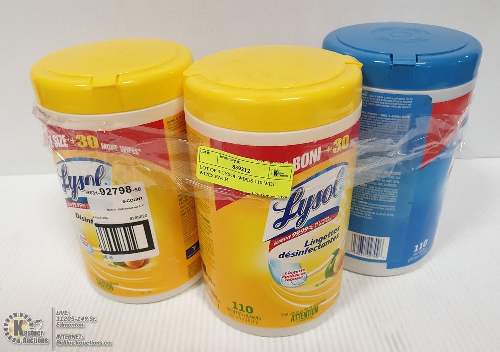 LOT OF 3 LYSOL WIPES 110 WET WIPES EACH