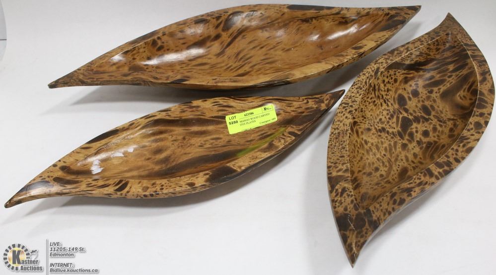 LOT OF 3 MANGO WOOD CARVED DECORATIVE PLATES
