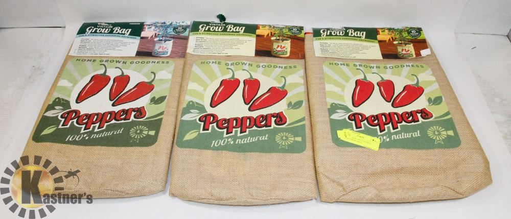 LOT OF 3 NEW 100% NATURAL PEPPER GROW BAGS.