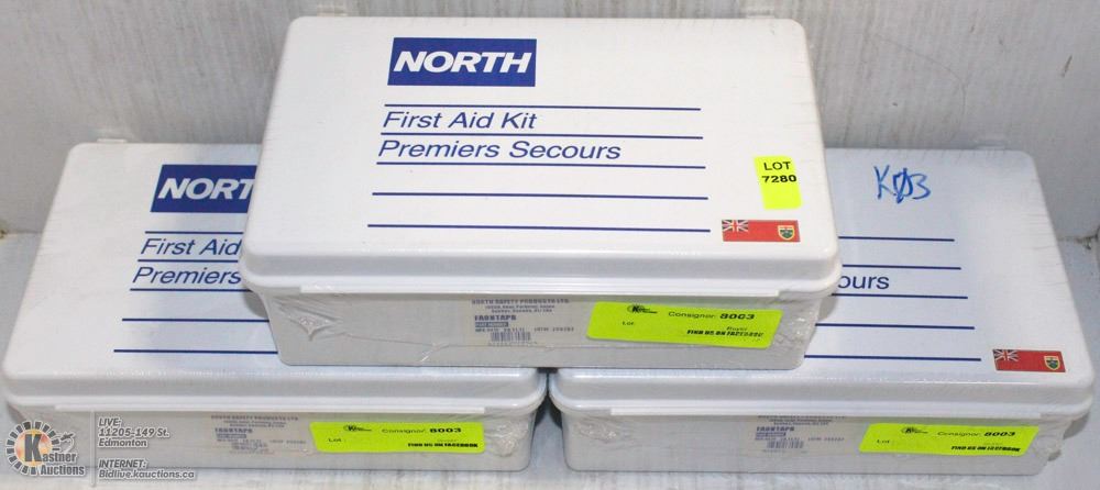 LOT OF 3 NEW NORTH FIRST-AID SAFETY KITS