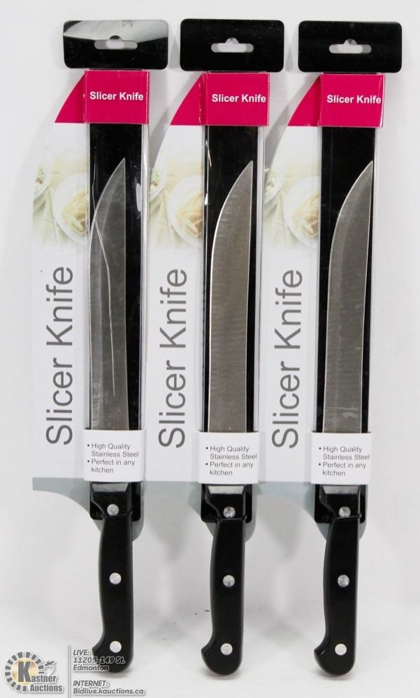 LOT OF 3 NEW STAINLESS STEEL SLICER KNIVES