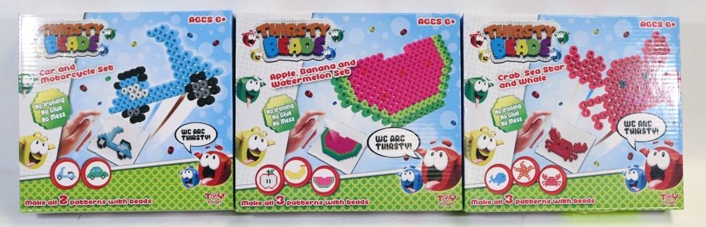 BIKE AND MORE . AGES 6+ , NO IRONING, NO GLUE, NO MESS! BY TOY TARGET INCL 100+ BEADS, TOOLS, STPRAY BOTTLE AND PLASTIC TRAY. KIDS
