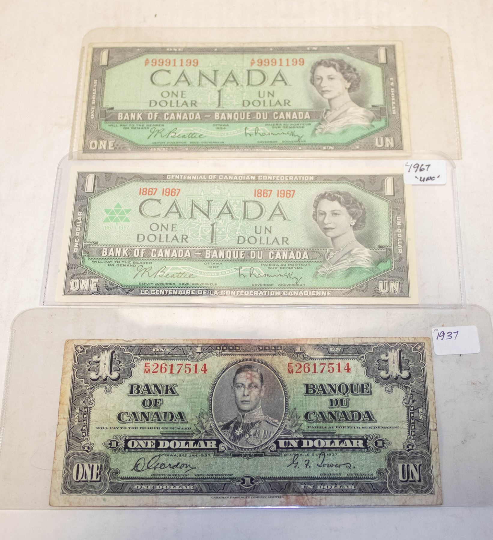 LOT OF 3 ONE DOLLAR BILLS-1937,1954,1967