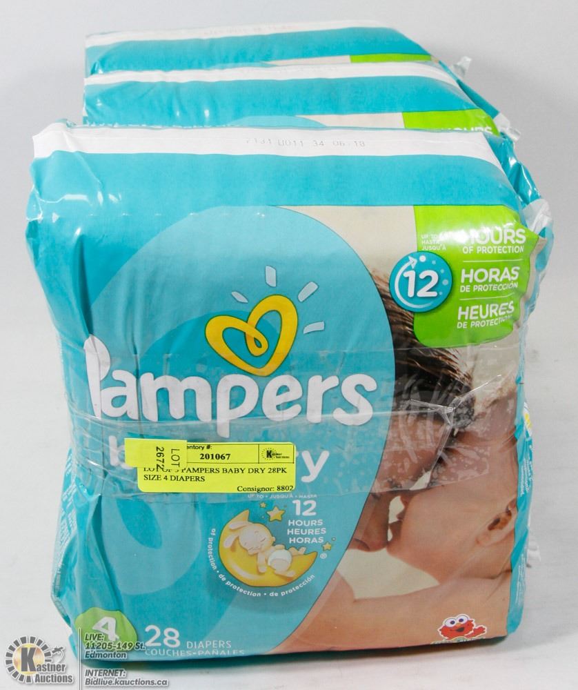 LOT OF 3 PAMPERS BABY DRY 28PK SIZE 4 DIAPERS