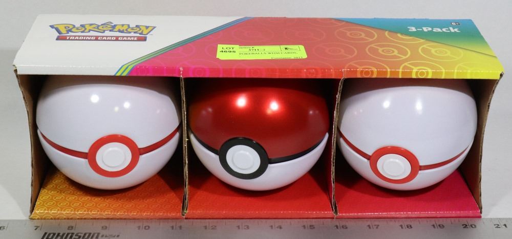 LOT OF 3 POKEBALLS WITH CARDS, DICE ETC.