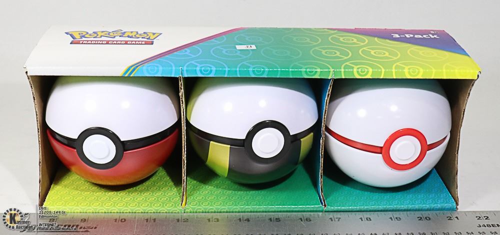 LOT OF 3 POKEBALLS WITH CARDS, DICE ETC.