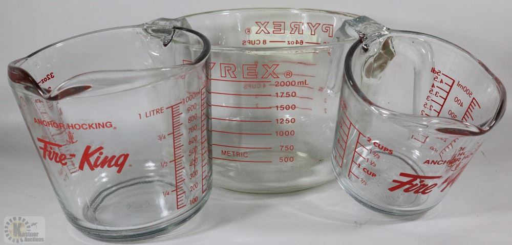 LOT OF 3 PYREX AND FIRE-KING MEASURING GLASSES