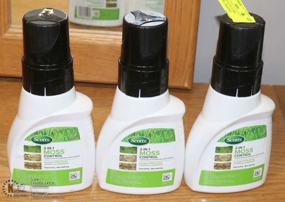 LOT OF 3 SCOTTS 2 IN 1 MOSS CONTROL, 500ML BOTTLES