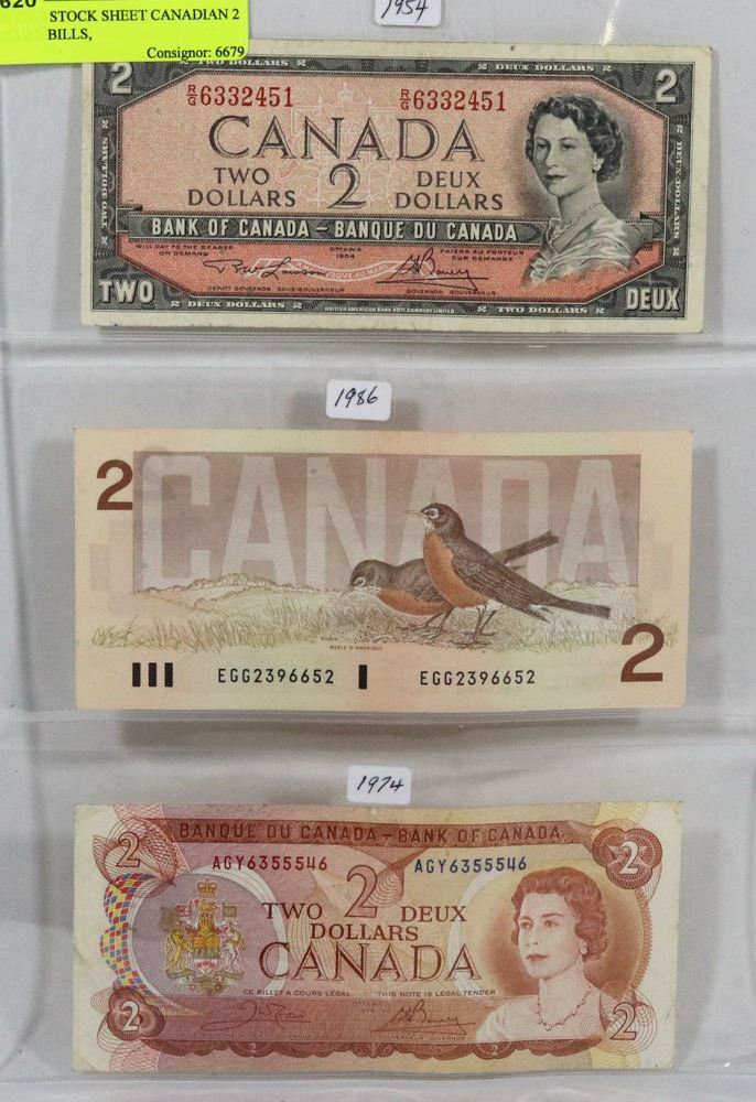 LOT OF 3 STOCK SHEET CANADIAN 2 DOLLAR BILLS,