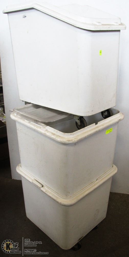 LOT OF 3 STORAGE CONTAINERS ON WHEELS