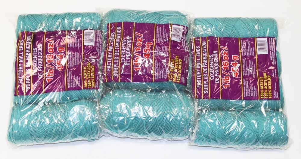 LOT OF 3 TEAL 1 LB BAGS OF 100% ACRYLIC YARN