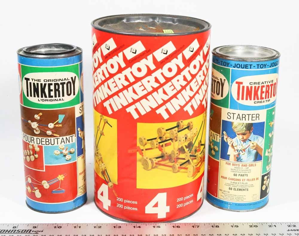 LOT OF 3 TINKER TOY CANISTERS FROM 1960S