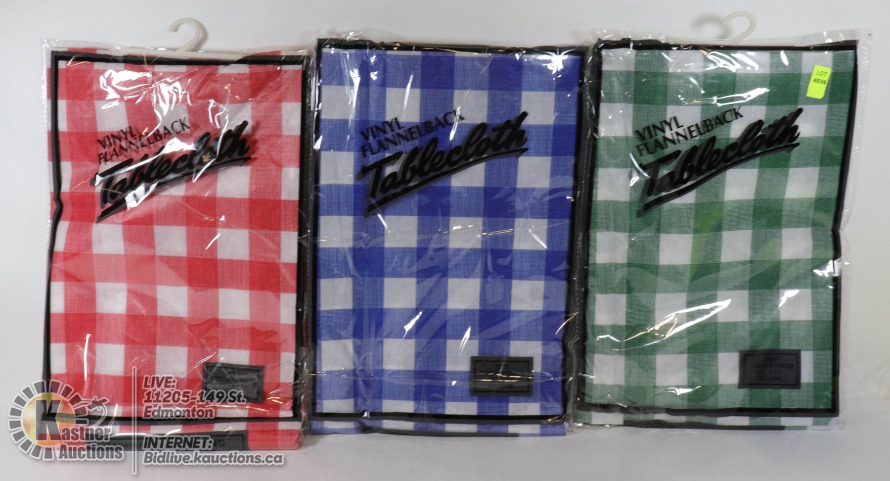 LOT OF 3 VINYL FLANNELBACK TABLECLOTHS