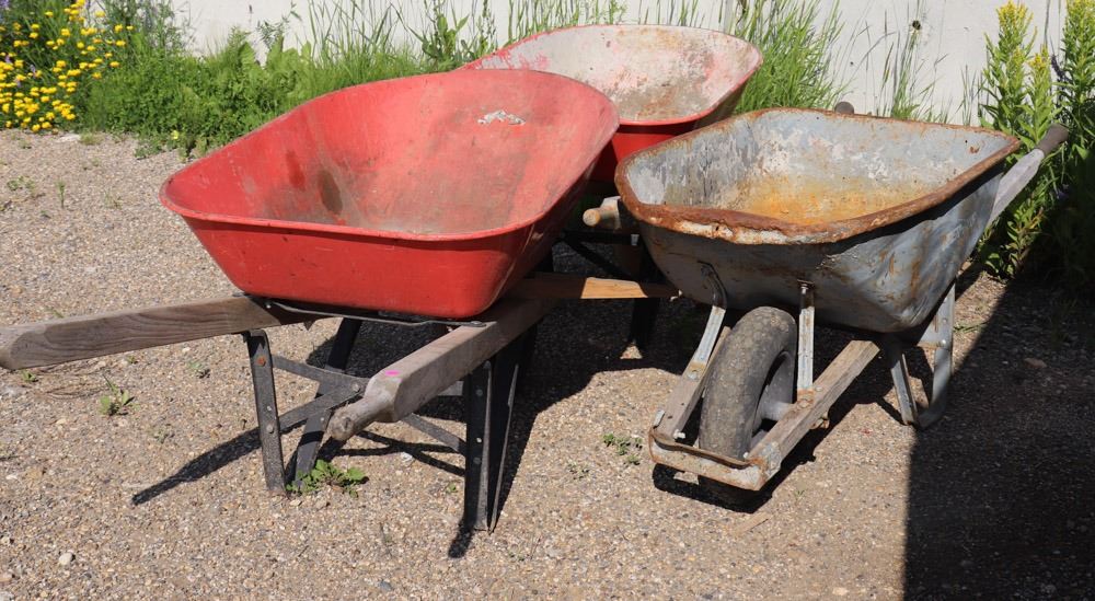 LOT OF 3 WHEEL BARROWS