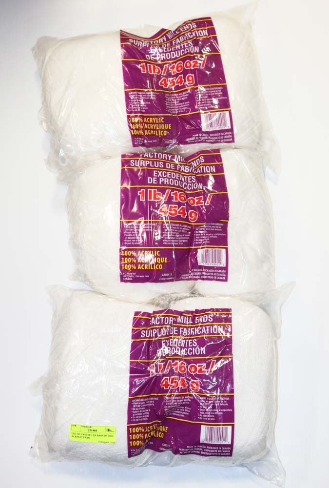 LOT OF 3 WHITE 1 LB BAGS OF 100% ACRYLIC YARN