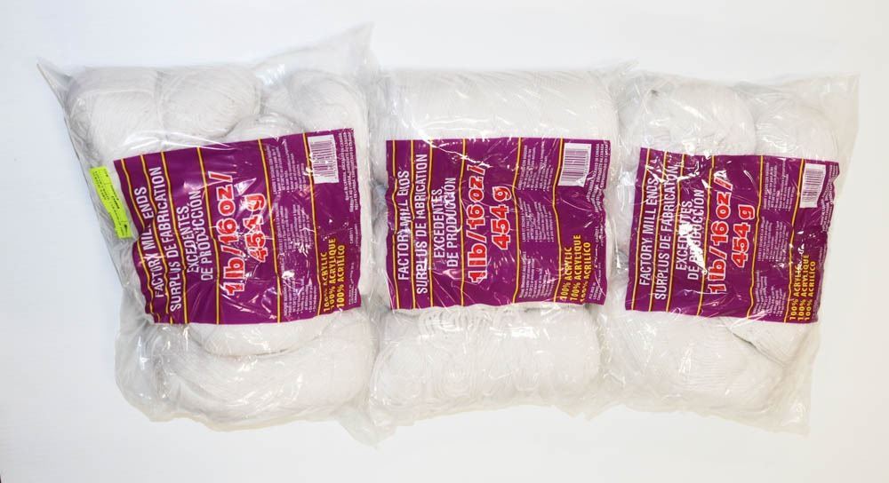 LOT OF 3 WHITE 1 LB BAGS OF 100% ACRYLIC YARN
