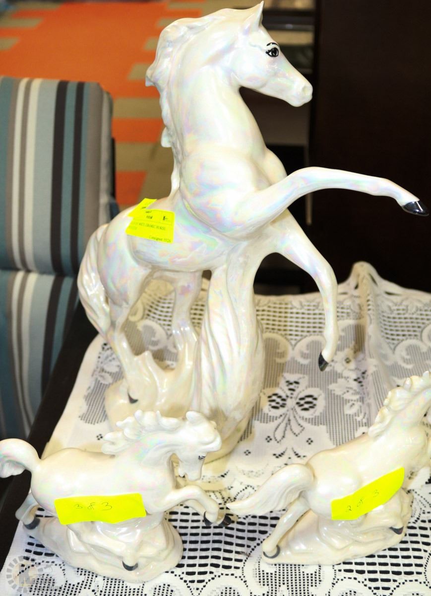 LOT OF 3 WHITE CERAMIC HORSE STATUES