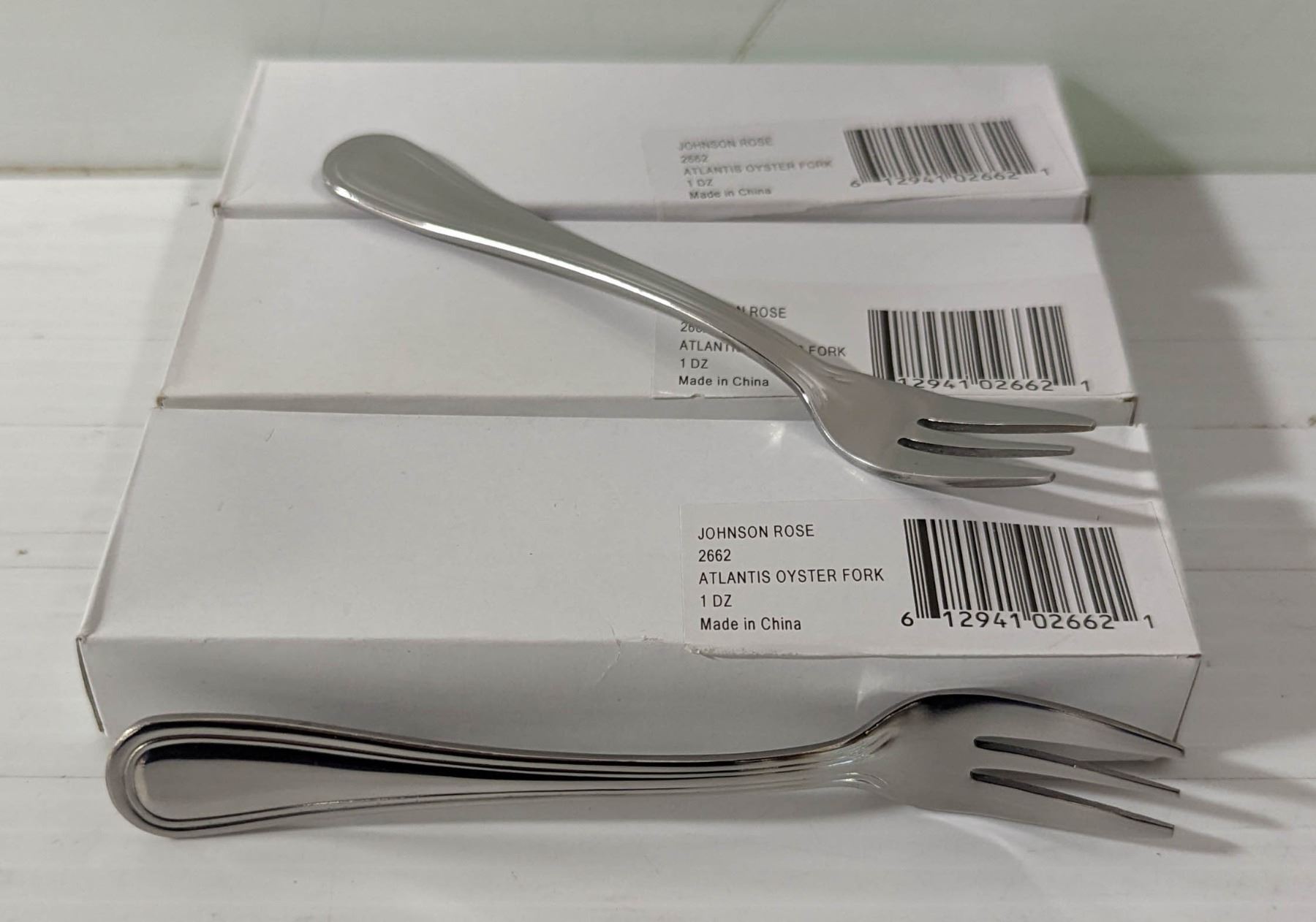 LOT OF 36 NEW JOHNSON ROSE ATLANTIS OYSTER FORKS