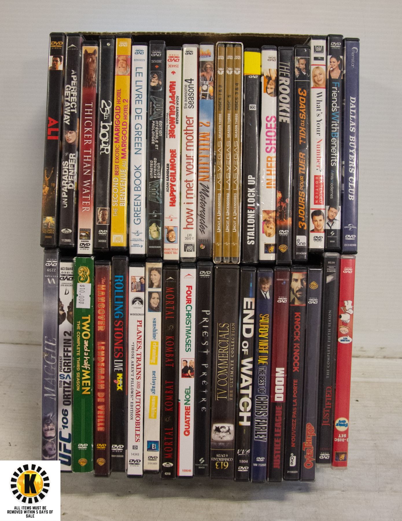 LOT OF 38 DVDS. ASSORTED TITLES, SOME NEW IN