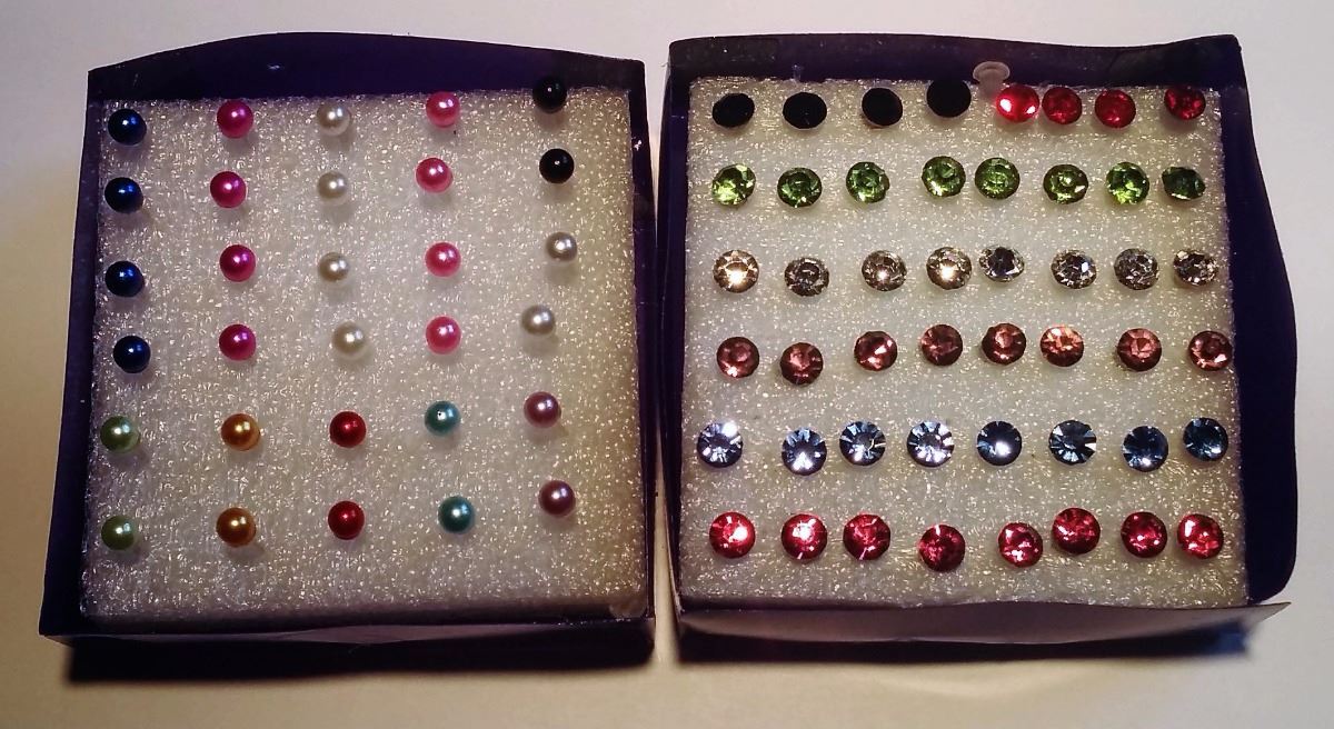 15 PAIRS OF MULTI COLORED PEARLS & 24 PAIRS OF MULTI COLORED CRYSTALS ALL HYPOALLERGENIC