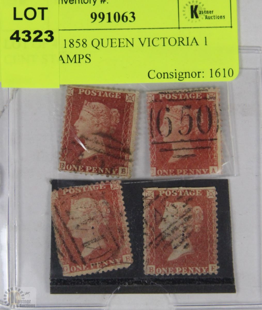 LOT OF 4 1858 QUEEN VICTORIA 1 CENT STAMPS