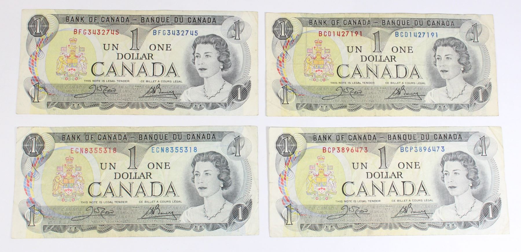 LOT OF 4 1973 CANADIAN $1 BANK NOTES