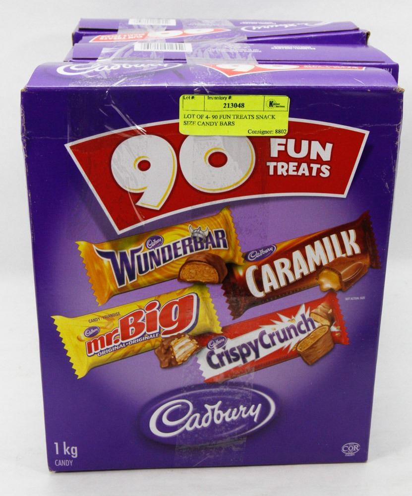 LOT OF 4- 90 FUN TREATS SNACK SIZE CANDY BARS