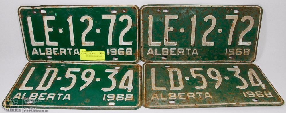LOT OF 4 ALBERTA 1968 LICENSE PLATES