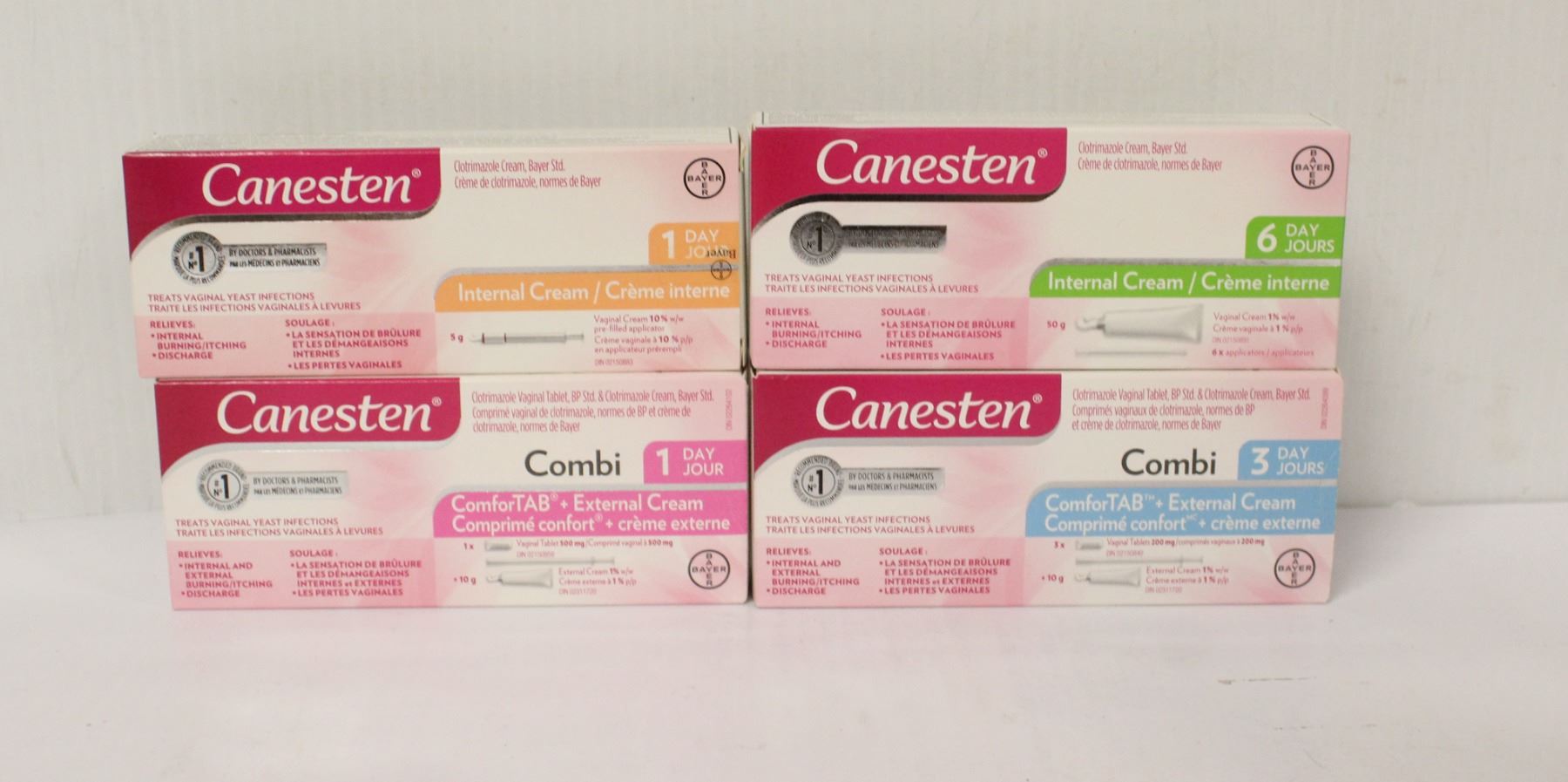 LOT OF 4 ASSORTED CANESTEN INTERNAL & EXTERNAL CLOTRIMAZOLE CREAMS. TREATS VAGINAL YEAST INFECTIONS
