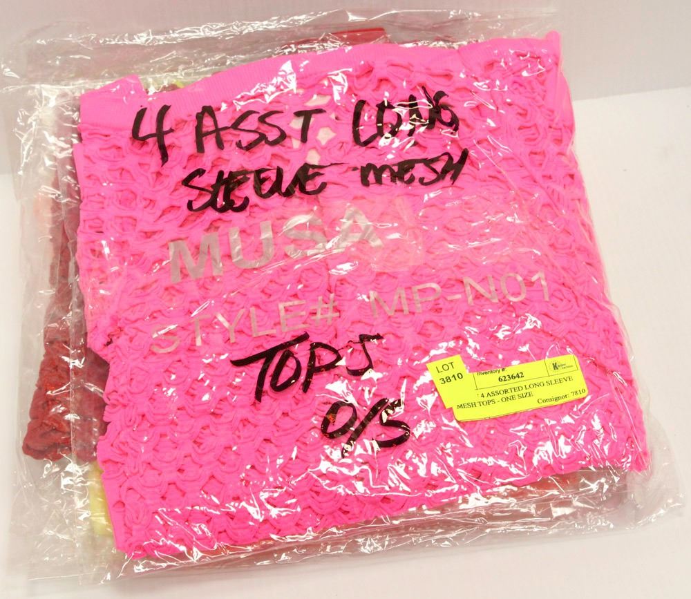 LOT OF 4 ASSORTED LONG SLEEVE MESH TOPS - ONE SIZE