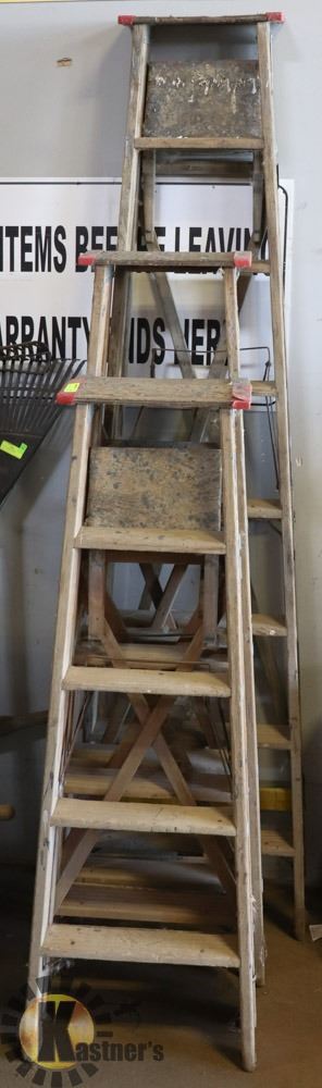 LOT OF 4 ASSORTED SIZE WOOD LADDERS 5'-8'