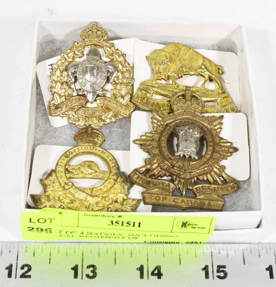 LOT OF 4 BADGES, INCLUDING ROYAL REGIMENT OF