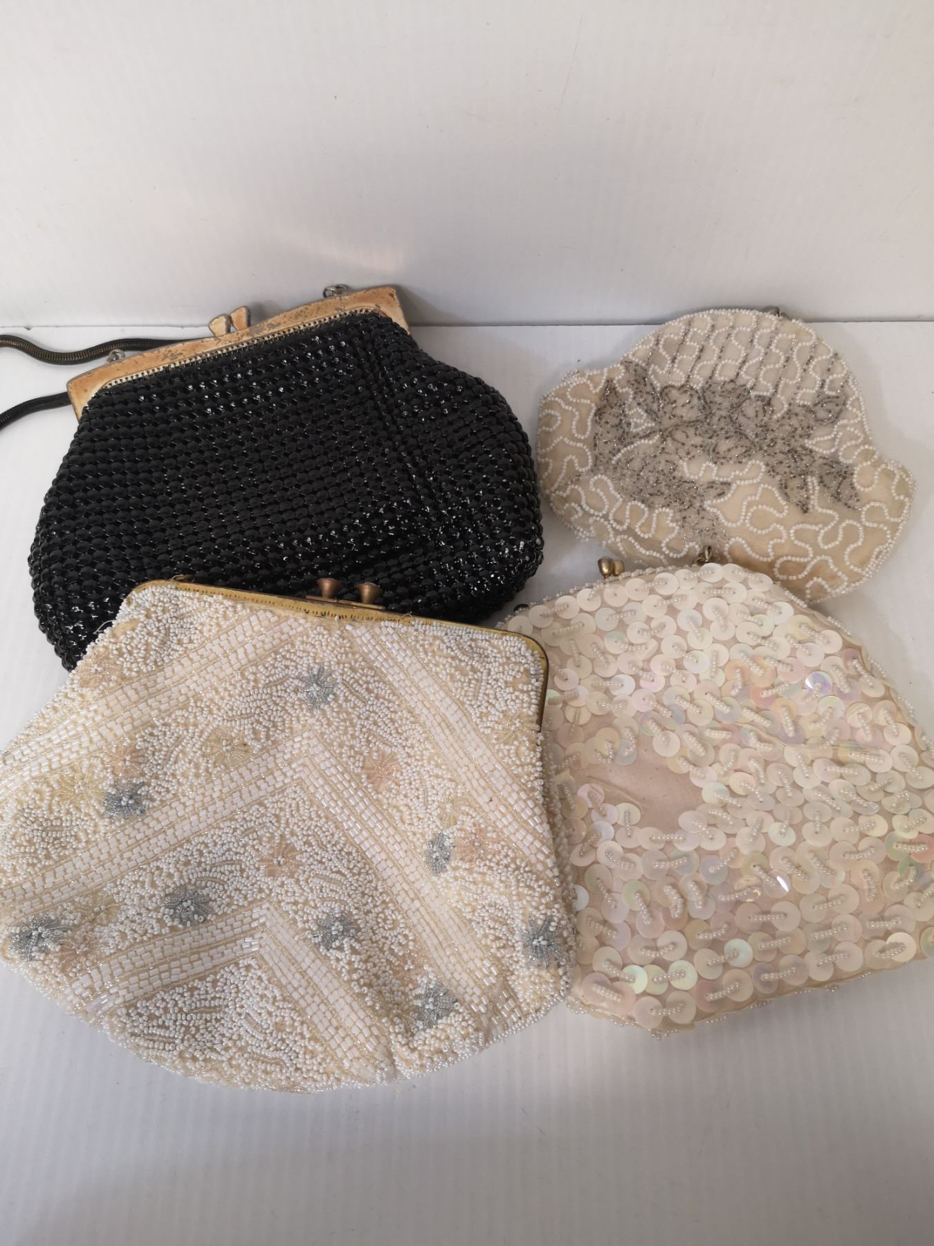 LOT OF 4 BEADED PURSES, EACH MADE IN A DIFFERENT