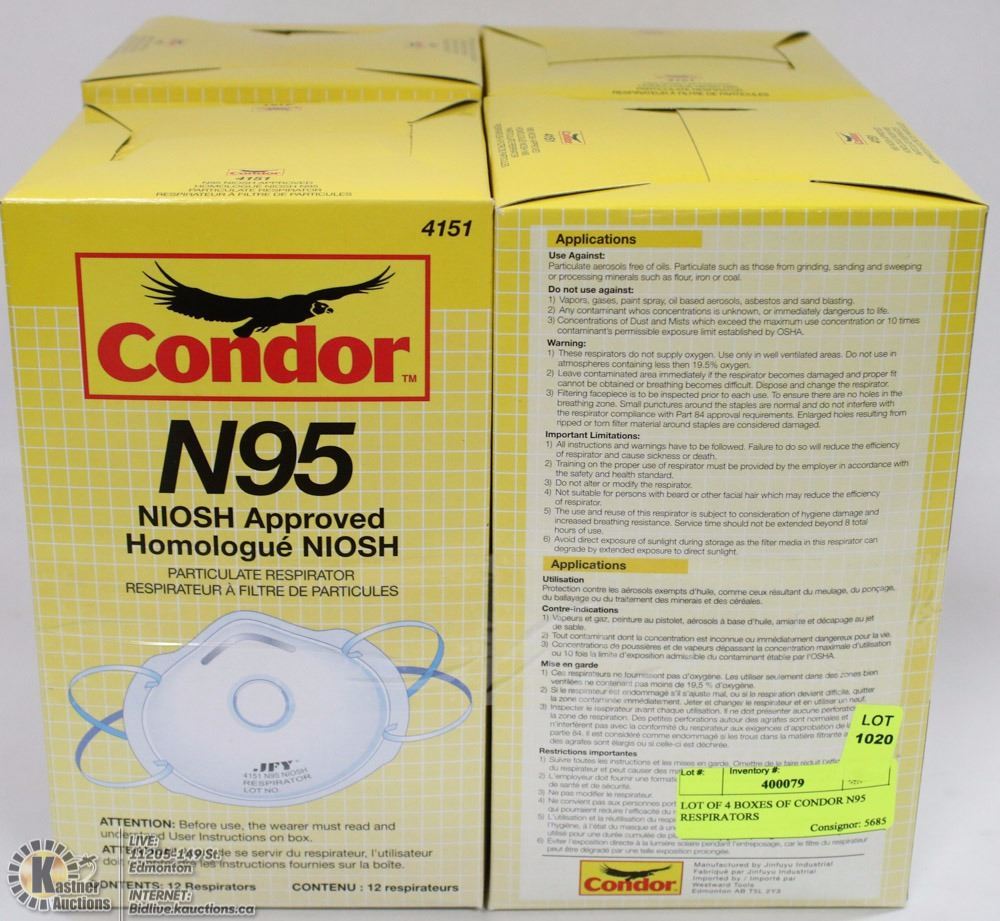 LOT OF 4 BOXES OF CONDOR N95 RESPIRATORS