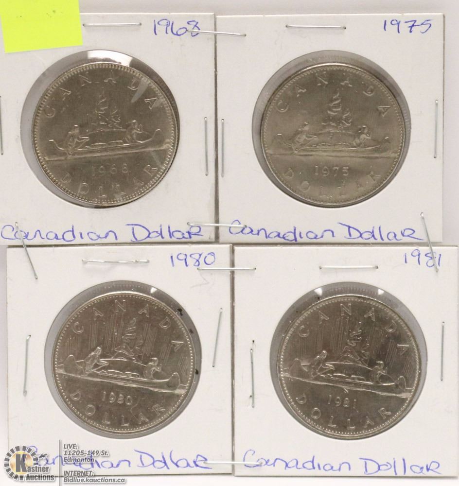 LOT OF 4 CANADIAN 1 DOLLAR COINS