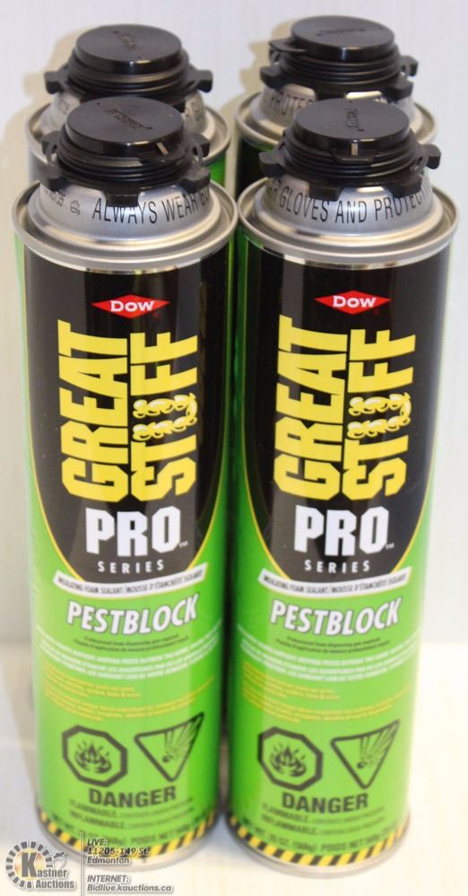LOT OF 4 CANS OF DOW GREAT STUFF PEST BLOCK PRO