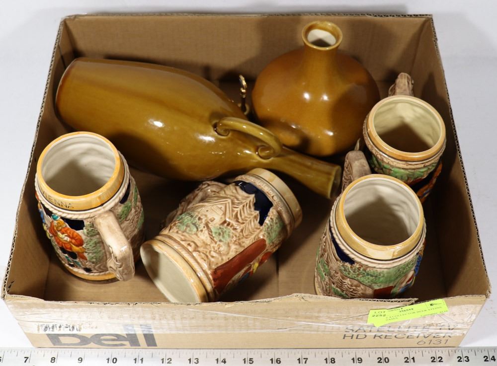 LOT OF 4 COLLECTOR BEER STEINS AND VASES