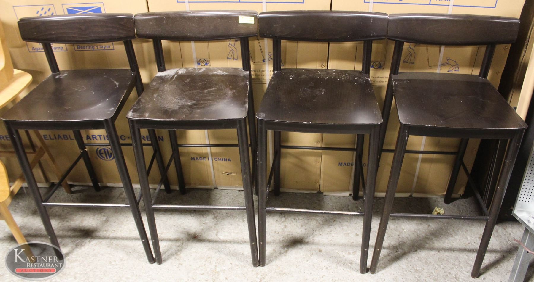 LOT OF 4 DARK WOOD BAR HEIGHT CHAIRS