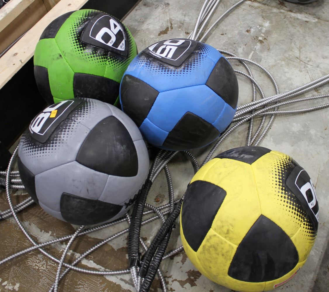 LOT OF 4 ESCAPE FITNESS MEDICINE BALLS, 8.8LB,