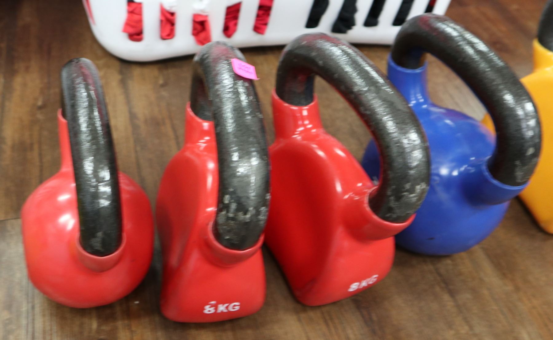 LOT OF 4 KETTLE BALL WEIGHTS, 8KG & 12KG