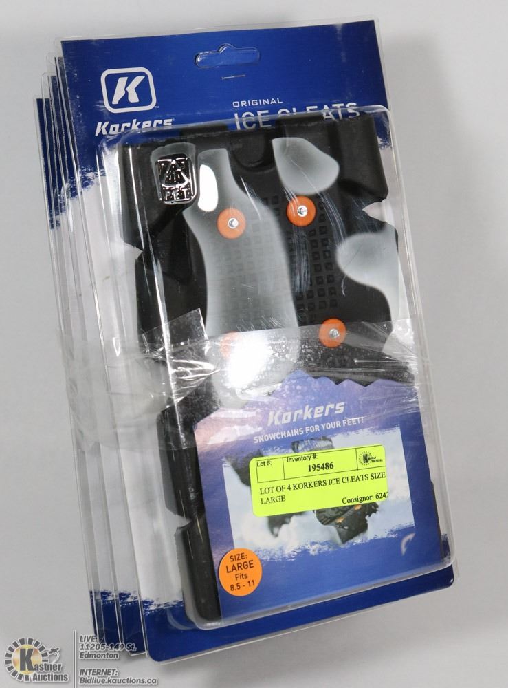 LOT OF 4 KORKERS ICE CLEATS SIZE LARGE
