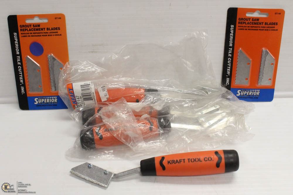 LOT OF 4 KRAFT GROUT SAWS WITH REPLACEMENT BLADES