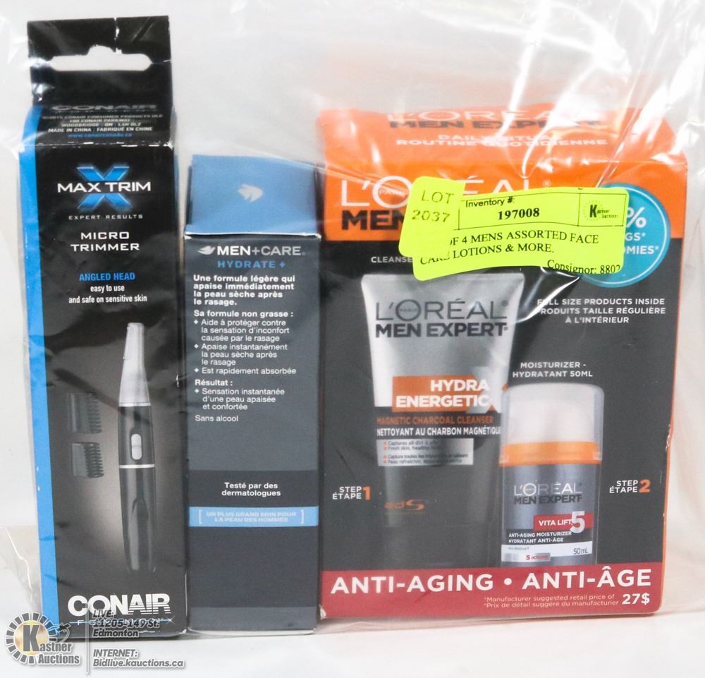 LOT OF 4 MENS ASSORTED FACE CARE LOTIONS & MORE.