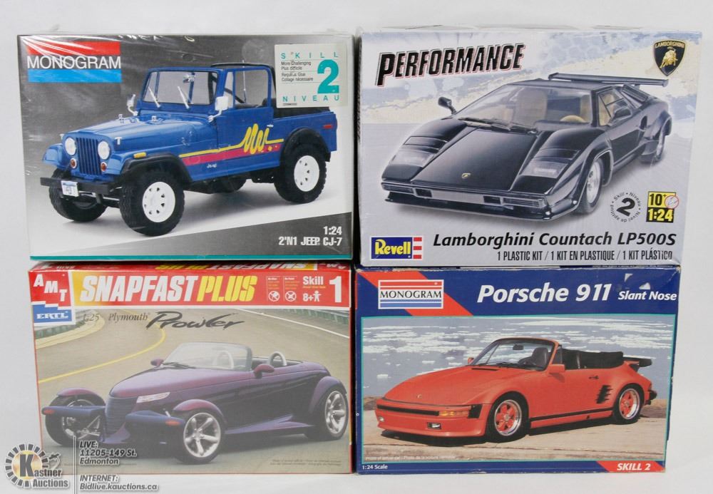 LOT OF 4 MODEL CAR KITS INCL PORCHE 911,