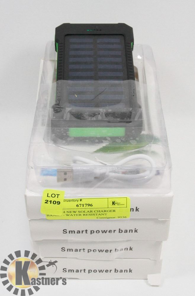 1 GREEN 1 RED AND 2 BLACK CHARGERS. EMERGENCY LED LIGHT, SHOCK PROOF, WATER RESISTANT, DUAL USB CHARGING PORTS. LI-POLYMER BATTERY, COMPATIBLE WITH CELL PHONES, GPS, CAMERA, VAPES ETC. INCLUDES USB FANS AND USB CHARGE CABLES.
