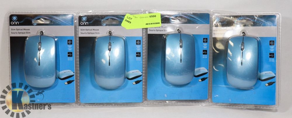 LOT OF 4 ONN SLIM OPTICAL CORDED MICE