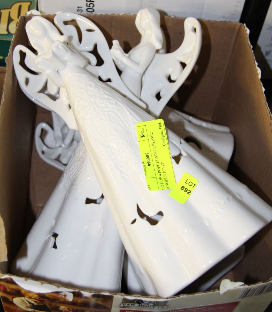 LOT OF 4 PORCELAIN/CERAMIC ANGELS 10"-12"