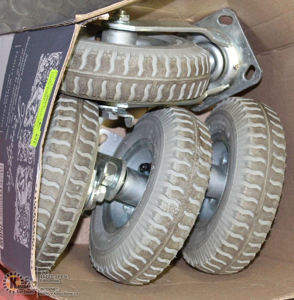 LOT OF 4 RUBBER 8" INFLATABLE CASTOR WHEELS