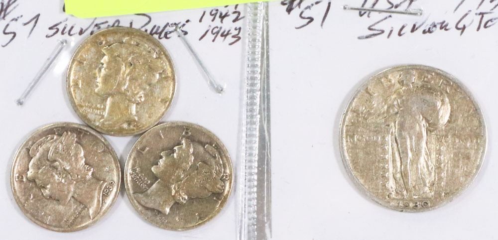 3 DIMES, 1939, 1942 AND 1943. CURRENCY