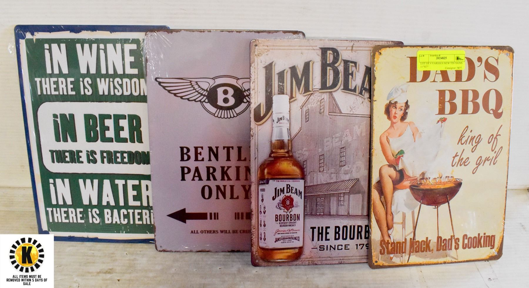 LOT OF 4 VARIOUS NEW TIN SIGNS 11"X7"
